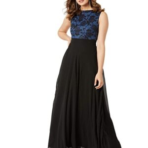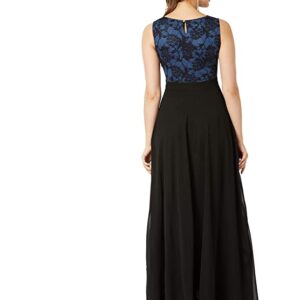 Blue and black floral maxi fit & flare sleeveless dress, Has round neck and back zip closure.
