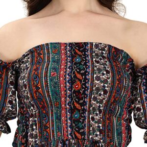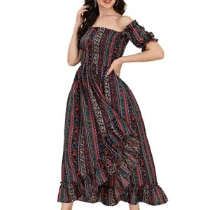 Offshoulder dress with puffed sleeves, smocked bodice and ruffles wrap skirt