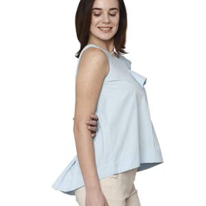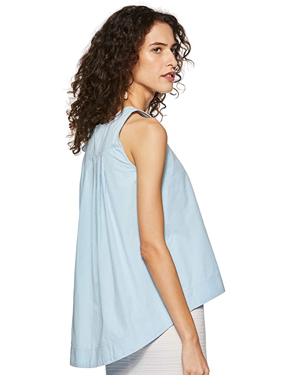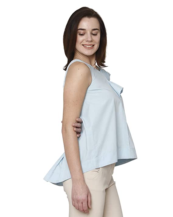 Vero Moda Women Light Blue Solid U-Neck Sleeveless Regular Fit Cropped / Short Casual Wear High-Low Top