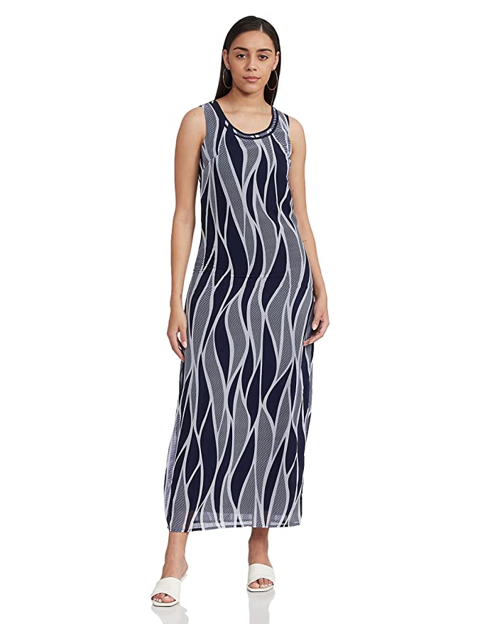 Vero Moda Women’S 100%Polyester Printed Regular Fit Sleeveless Round Neck Casual Dress